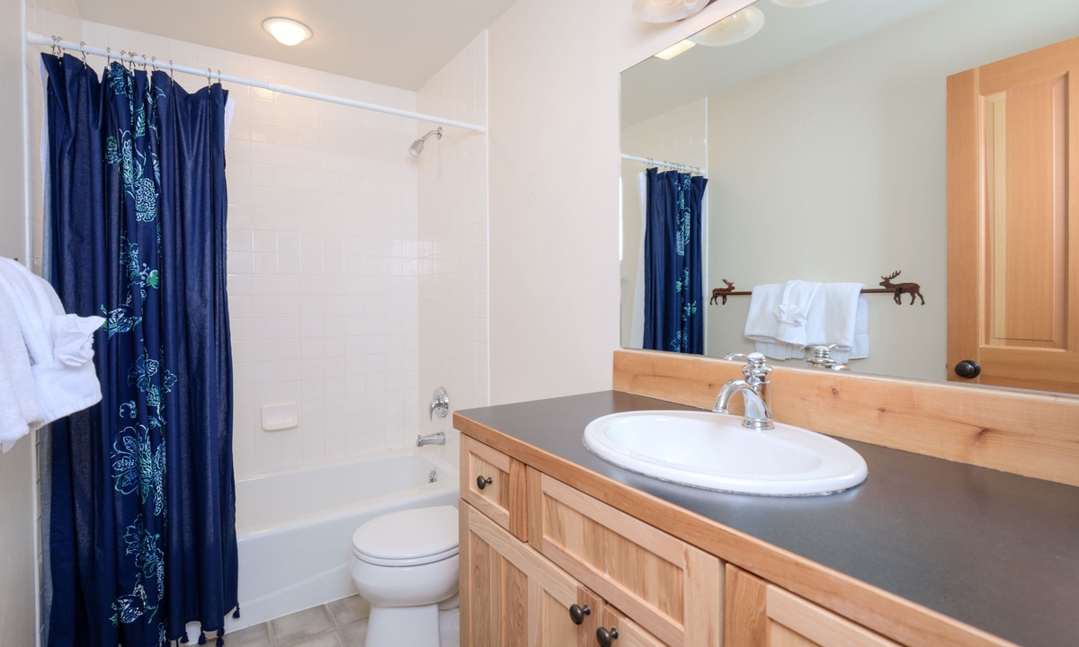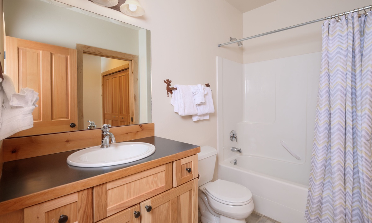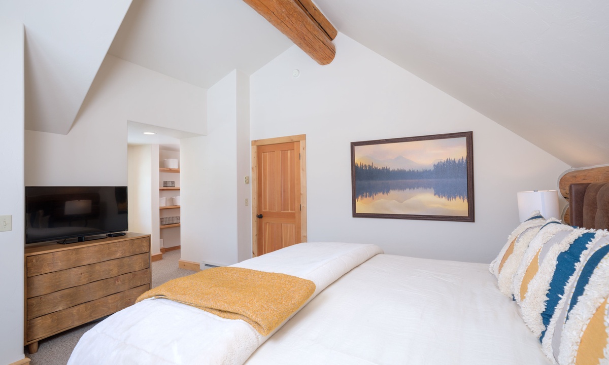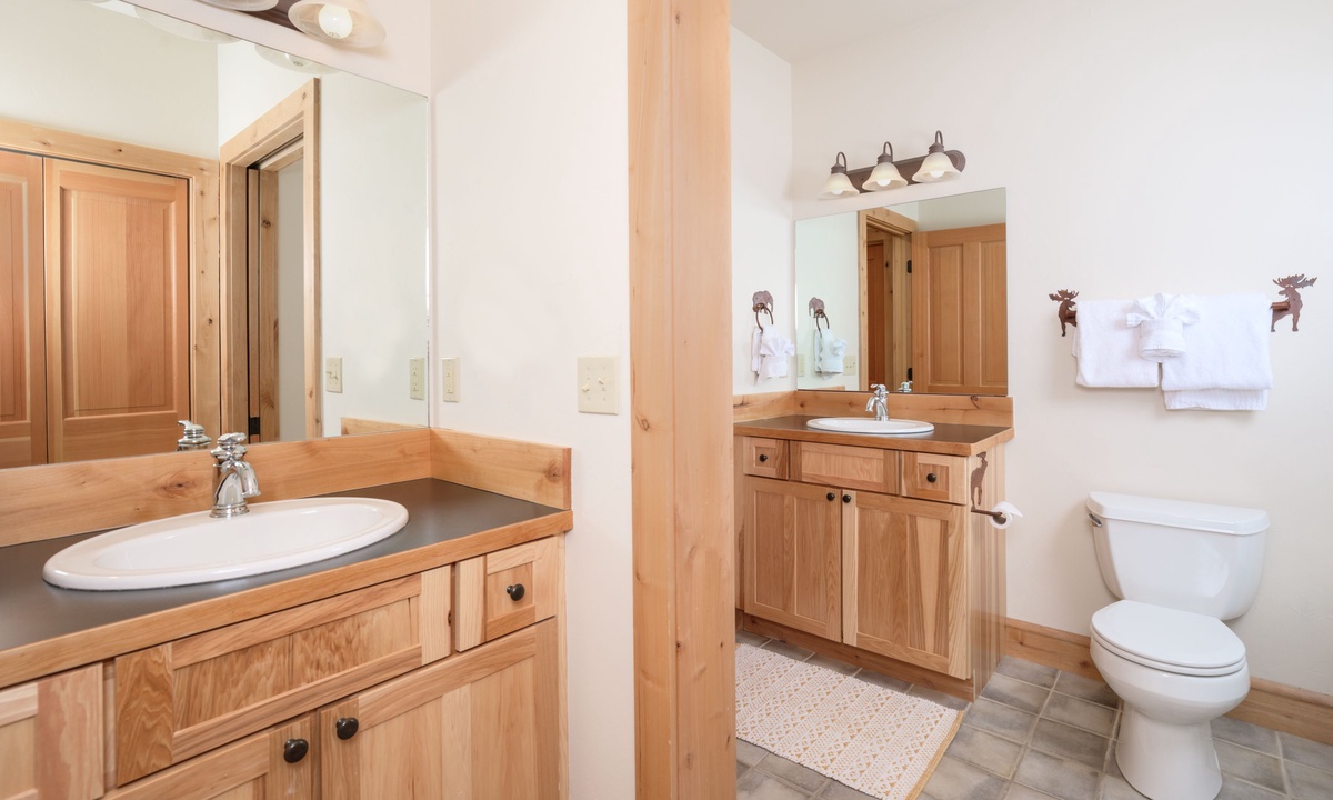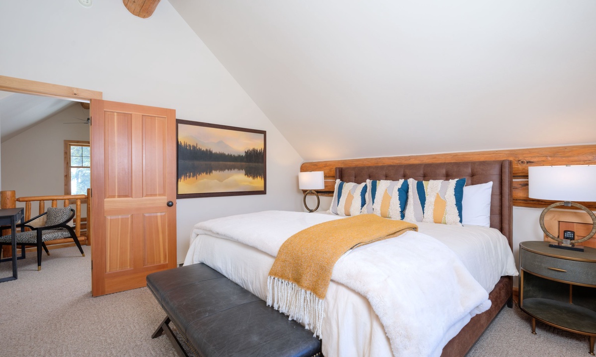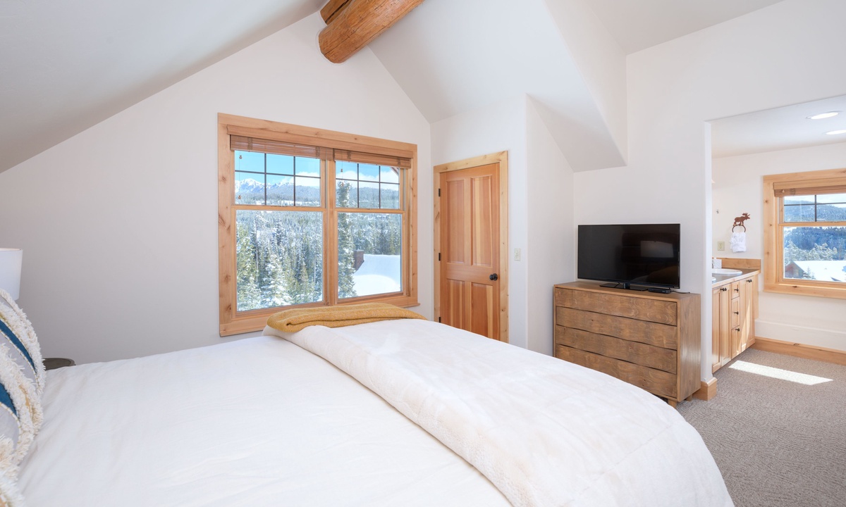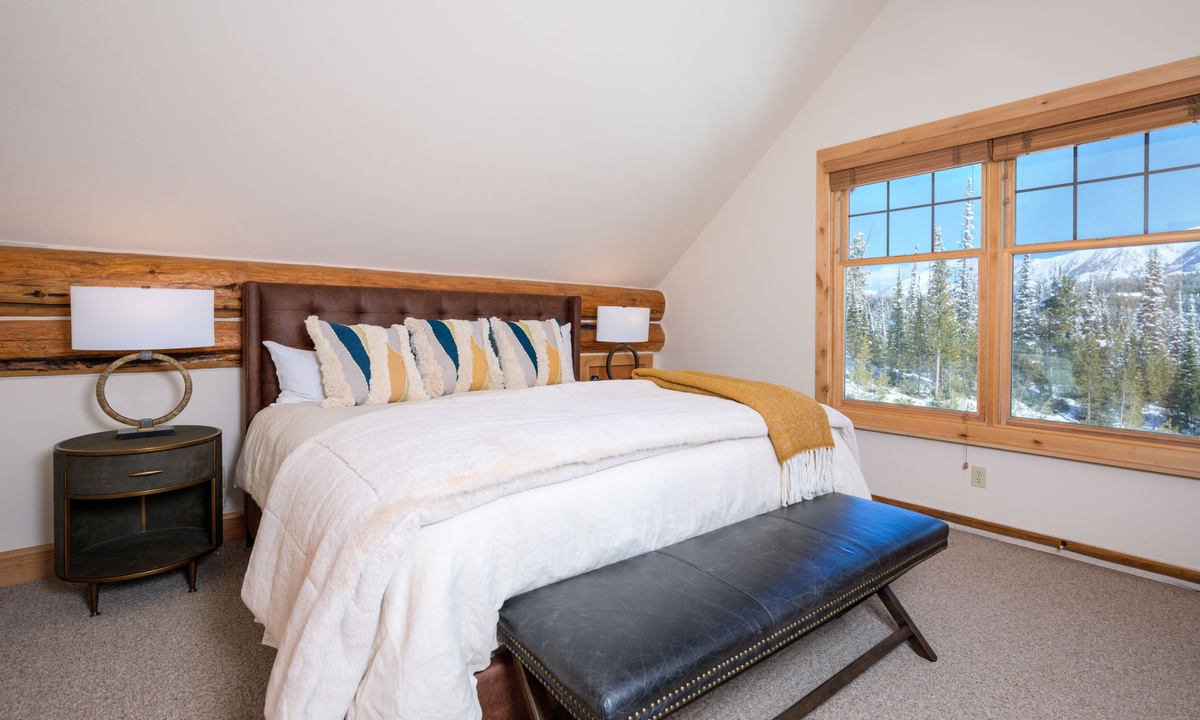The main level of the home features an open plan living area with plenty of seating, a fully-equipped kitchen and a dining area for sharing meals. Step outside to a wooden deck for BBQs, alfresco dining in the warmer months and scenic vistas of the Spanish Peaks. There are two bedrooms on the main level of the home, a comfortable queen and king room sharing a bathroom.