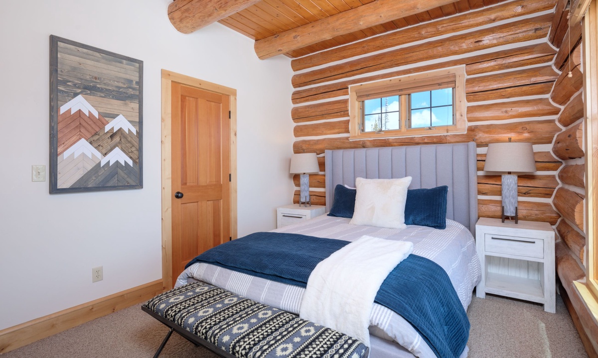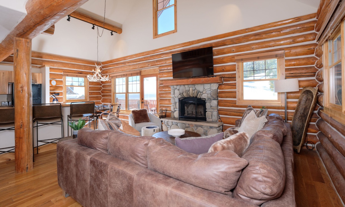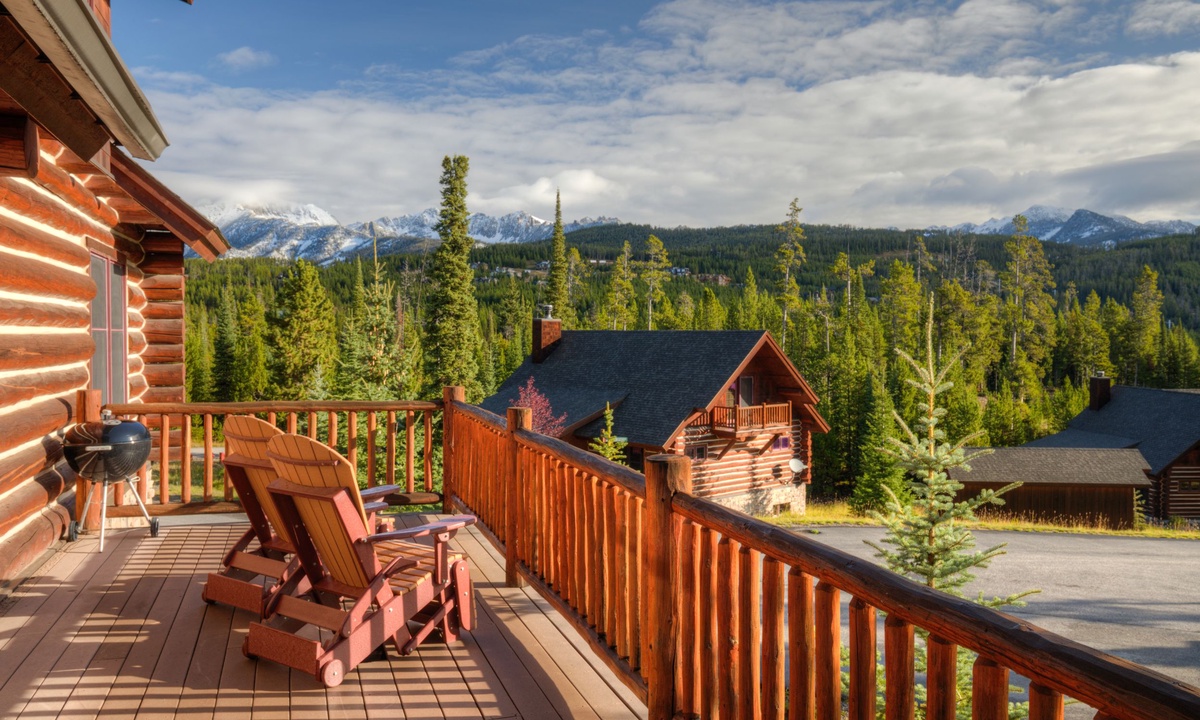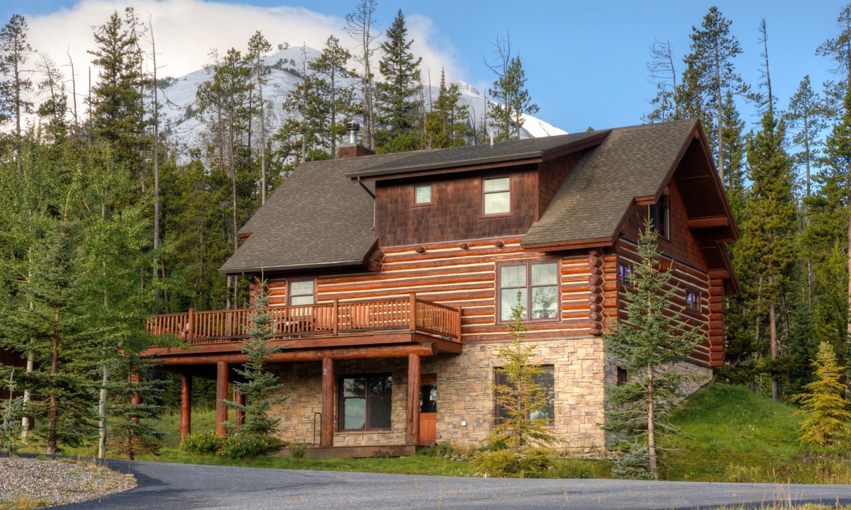 Rosebud 2 is a spacious 4 Bedroom 3 Bathroom Powder Ridge Cabin that offers comfort, convenience and some of the best views of Montana’s Spanish Peaks. This sought-after Big Sky cabin has the ambiance of a true alpine cabin with hand-hewn logs, hardwood floors, a wood-burning fireplace and western inspired interiors. With 2,500 sq ft of space, two separate living areas, two outdoor decks and four bedrooms spread over three levels, this home has ample space for large groups to relax in comfort and privacy.