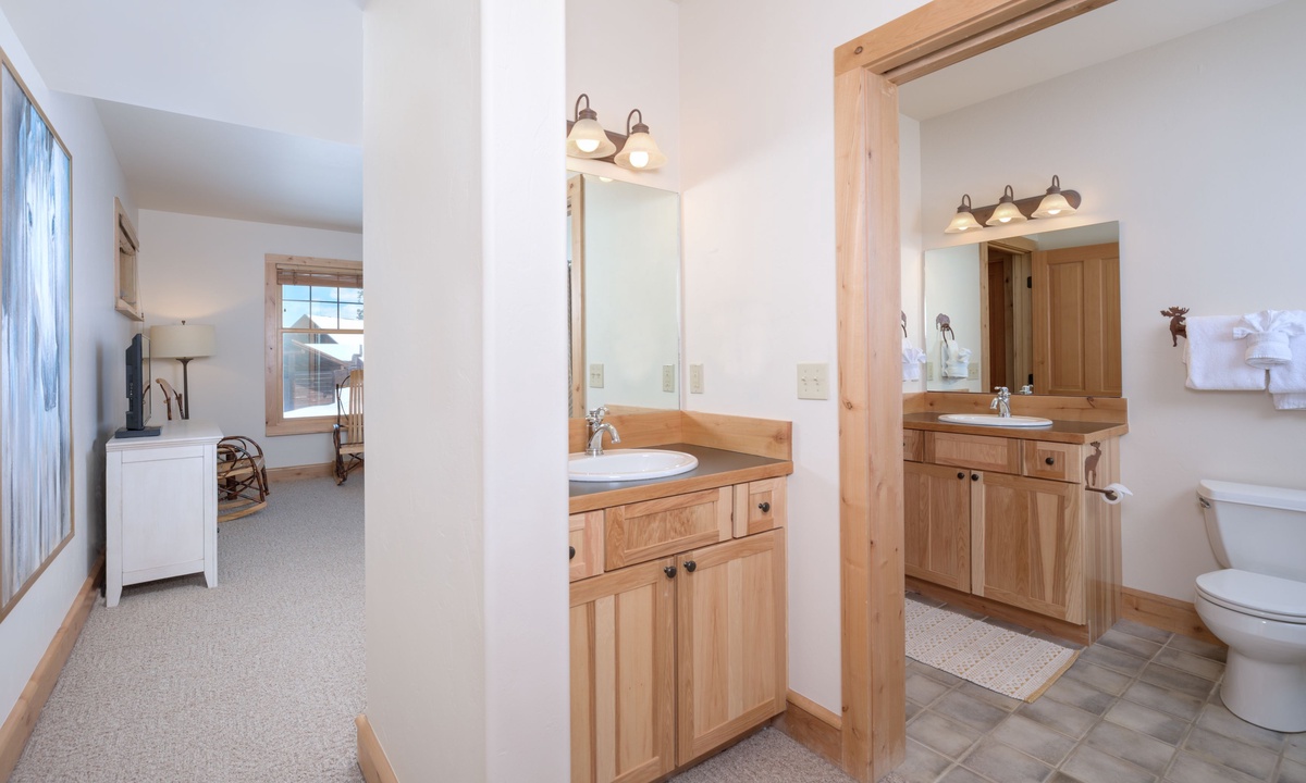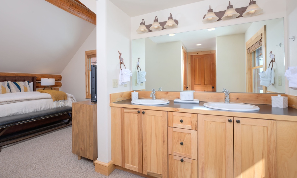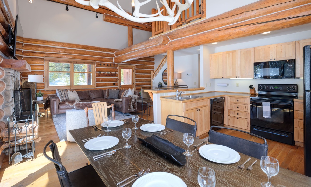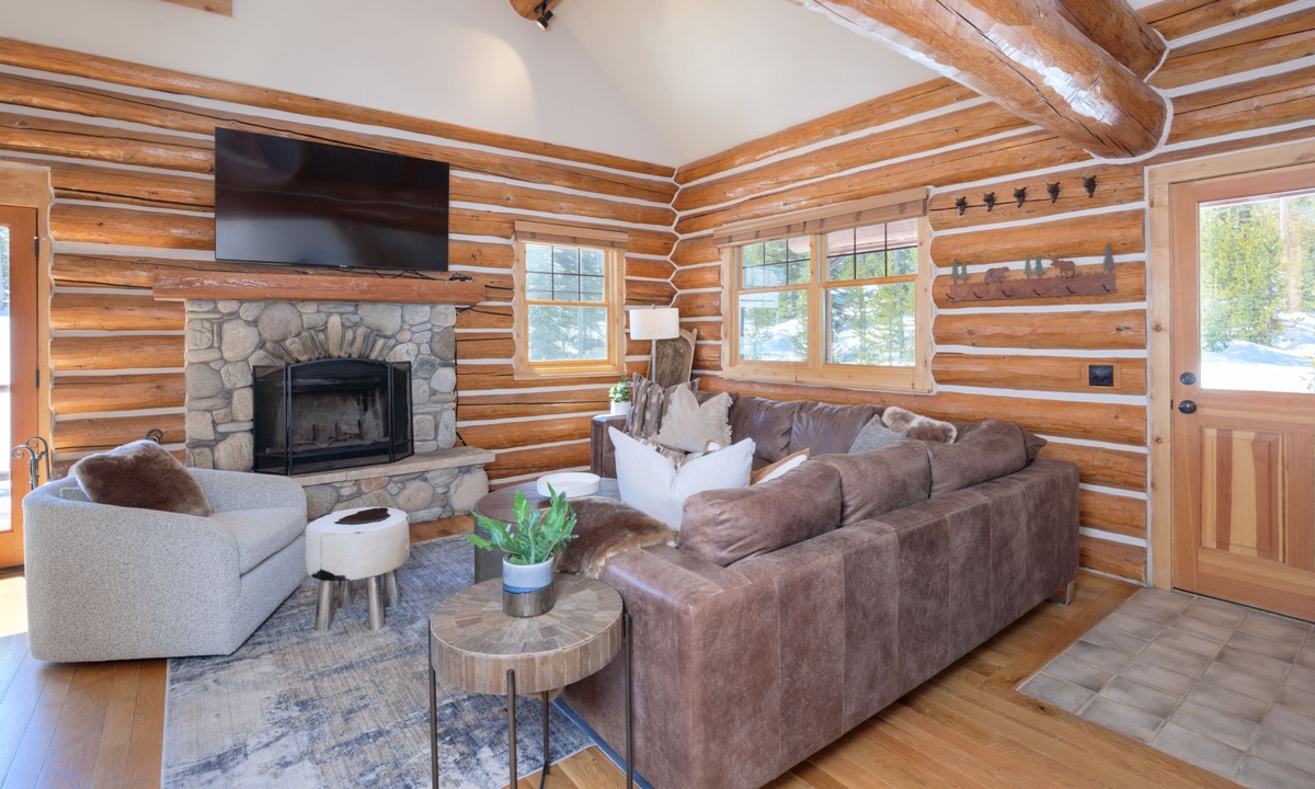 Rosebud 2 is a spacious 4 Bedroom 3 Bathroom Powder Ridge Cabin that offers comfort, convenience and some of the best views of Montana’s Spanish Peaks. This sought-after Big Sky cabin has the ambiance of a true alpine cabin with hand-hewn logs, hardwood floors, a wood-burning fireplace and western inspired interiors. With 2,500 sq ft of space, two separate living areas, two outdoor decks and four bedrooms spread over three levels, this home has ample space for large groups to relax in comfort and privacy.