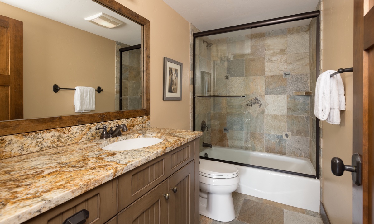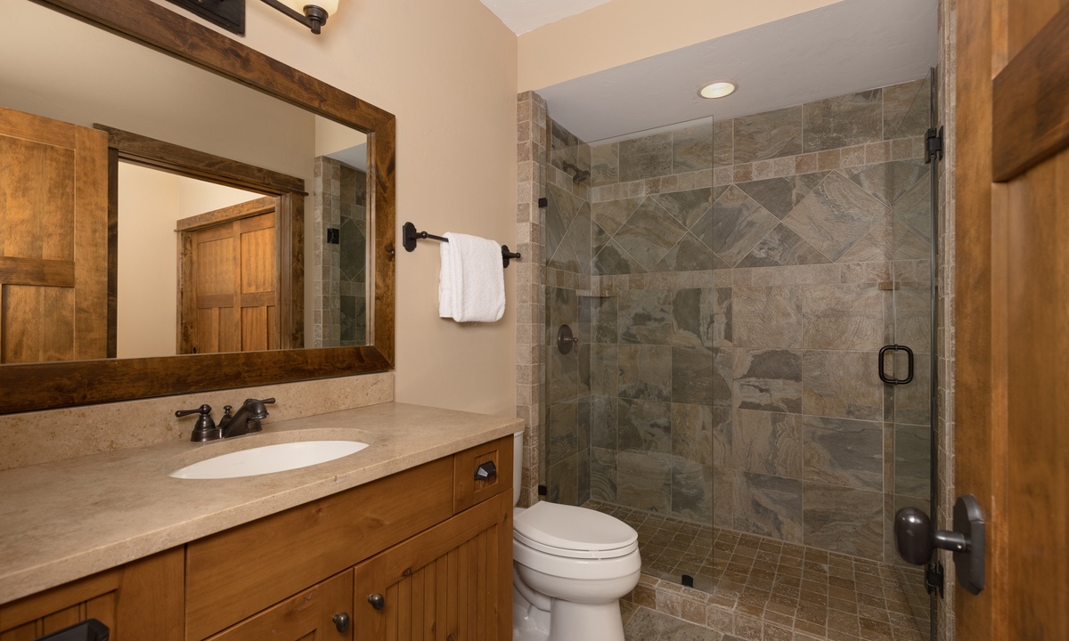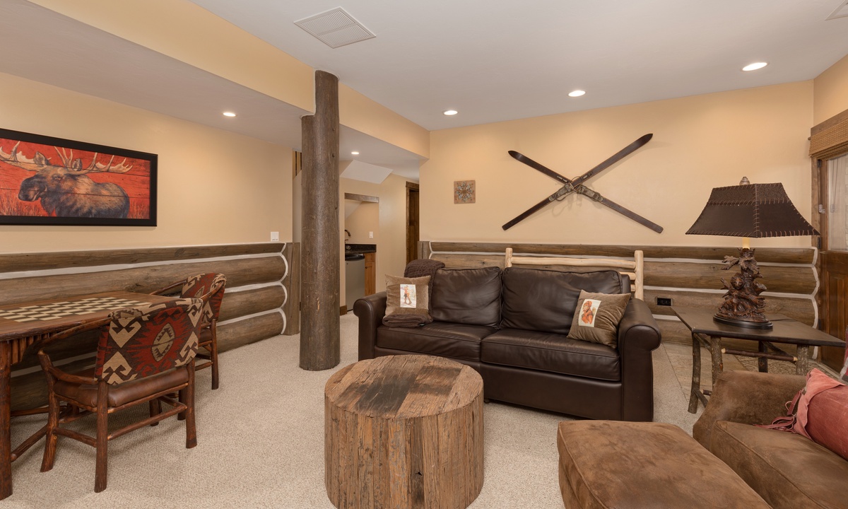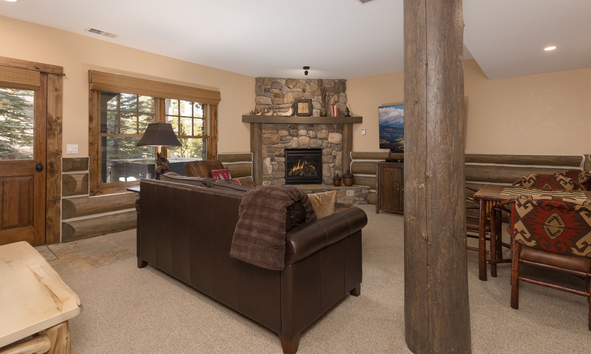 The entertainment does not end there! Manitou 15 boasts a separate family room on the lower level with an eye-catching stone clad fireplace, an American Leather sleeper sofa, a games table and a few steps to your private hot tub on the outdoor patio.