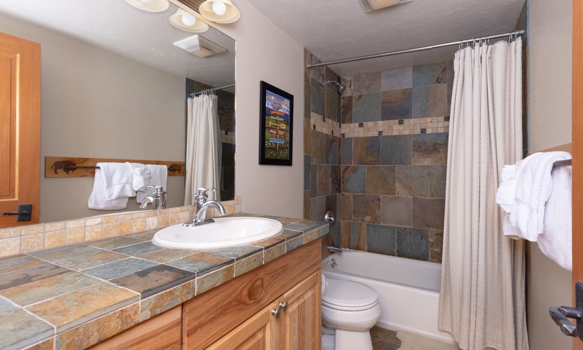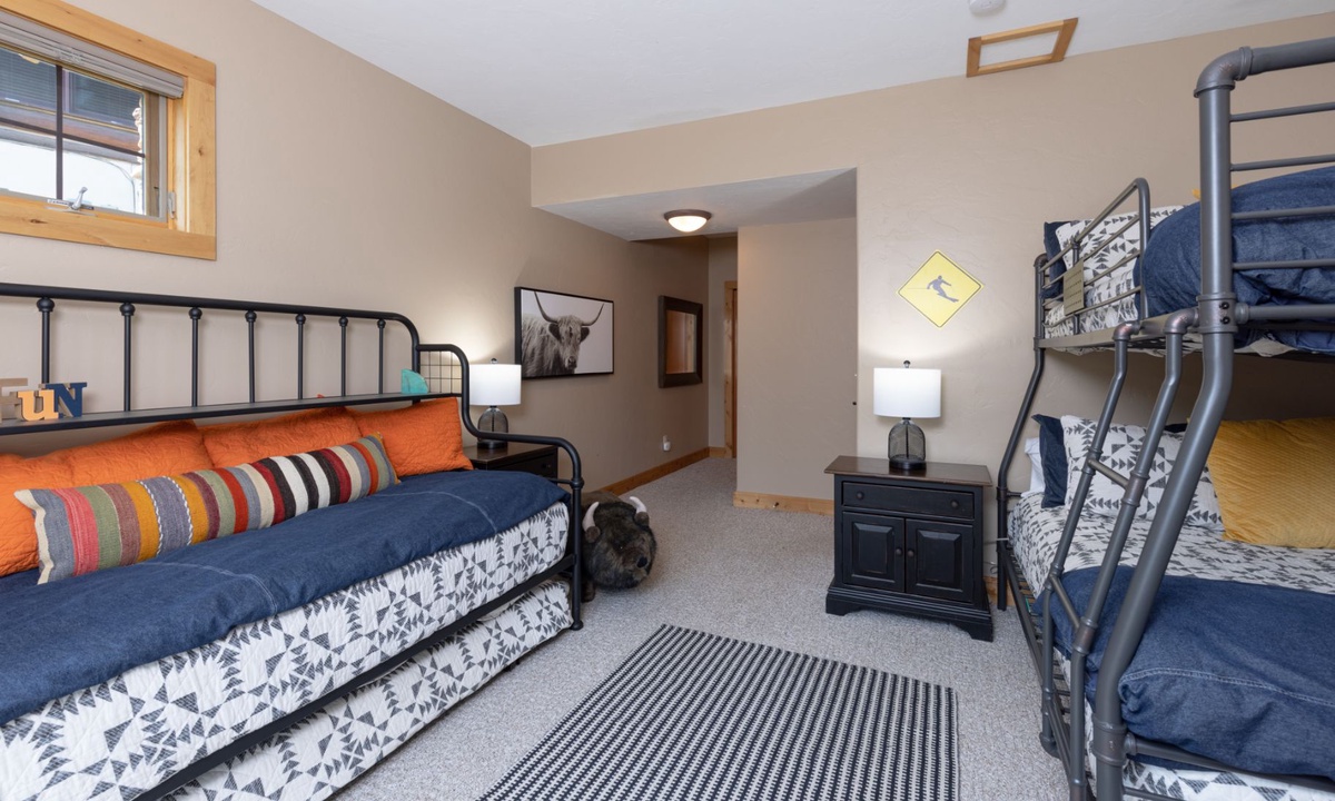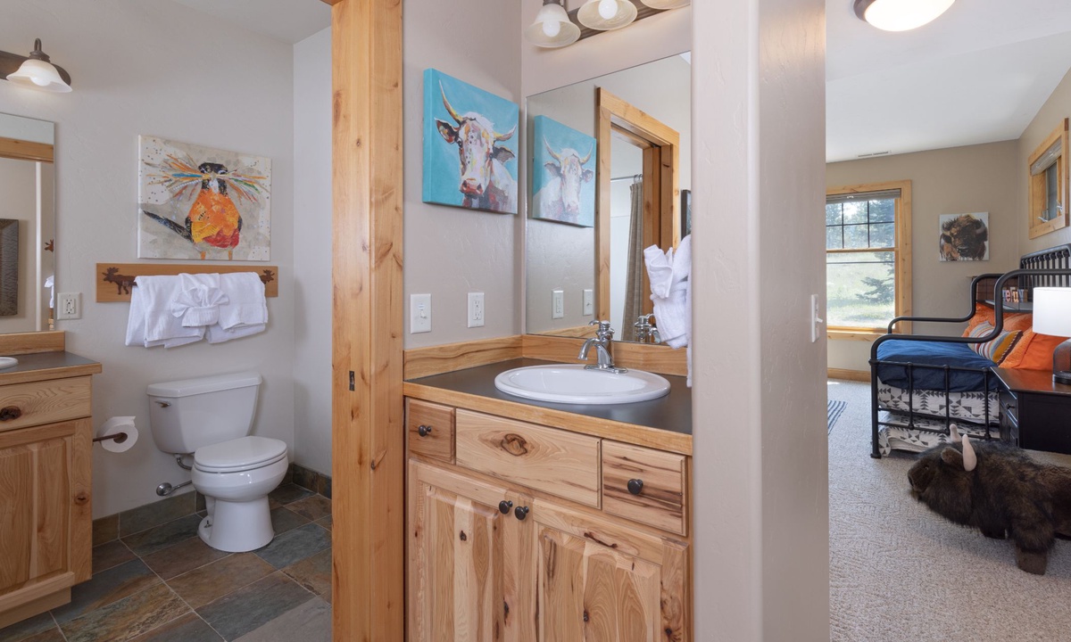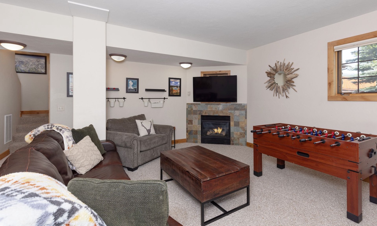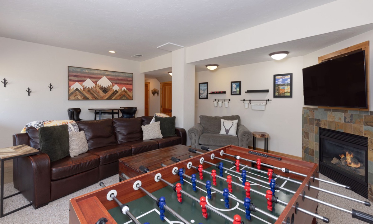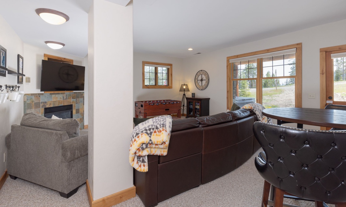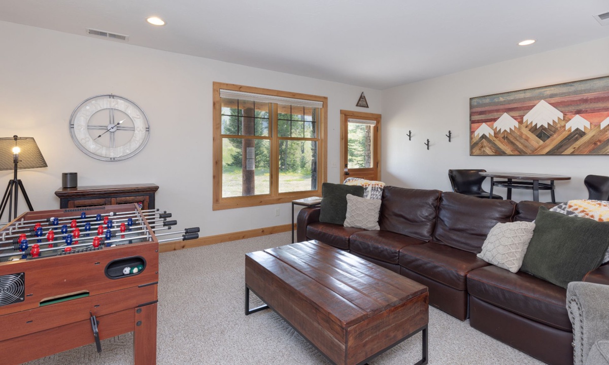 This cabin in Powder Ridge Big Sky Resortis new to our collection and is sure to become an annual favorite for all types of groups visiting Big Sky. Families with kids will love the great room with open kitchen to enjoy après overlooking the peaks while the kids are busy in the entertainment room playing foosball, pool and watching movies. Groups of couples will love how every bedroom has ample room to spread out and get organized. Summer groups will love the big deck to hang out and grill on those magical Big Sky summer nights. Winter’s ski access is convenient enough for having lunch at your home and heading out again. Don’t forget the outdoor hot tub and easy access to the Mountain Village when somebody forgets something. Powder Ridge Cabin Red Cloud 1B is one of the more spacious homes in Powder Ridge and we know you will enjoy it.
